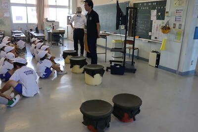 川口ボランティアセンターから講師を招き、4年生が福祉体験を行いました。
