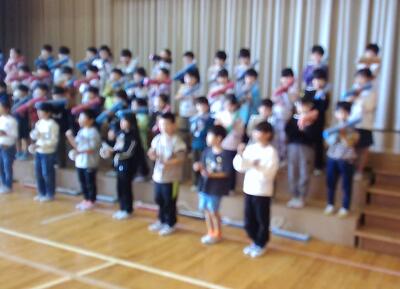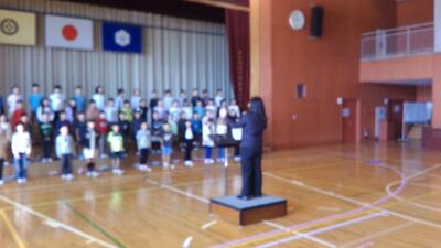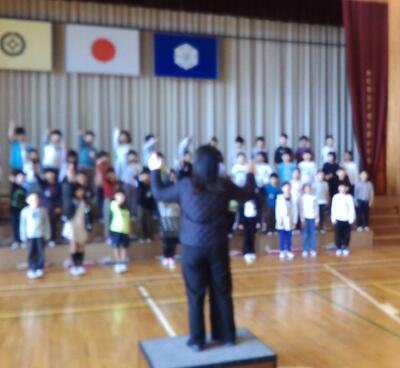 元気いっぱいの声が体育館に響いています。伴奏に歌声を合わせることや手を上に上げるタイミングを合わせることに苦戦していましたが、今では自信をもって歌えるようになってきました。