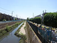 鋏町公園で休憩し、伝右川に沿って歩いて