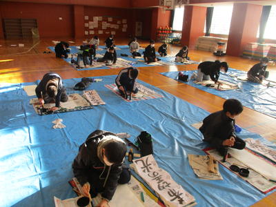 小学校最後の競書会で、教わったことや練習したことをいかして取り組みました。